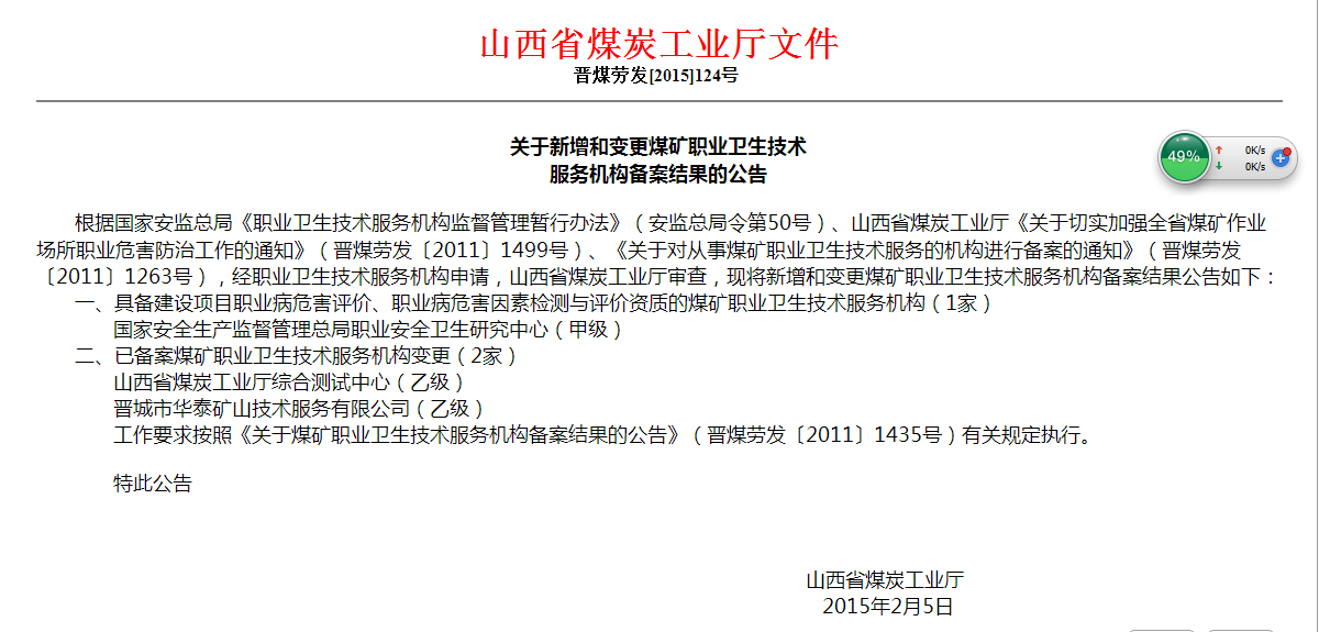 山西晉煤集團沁水胡底煤業有限公司 職業病 |